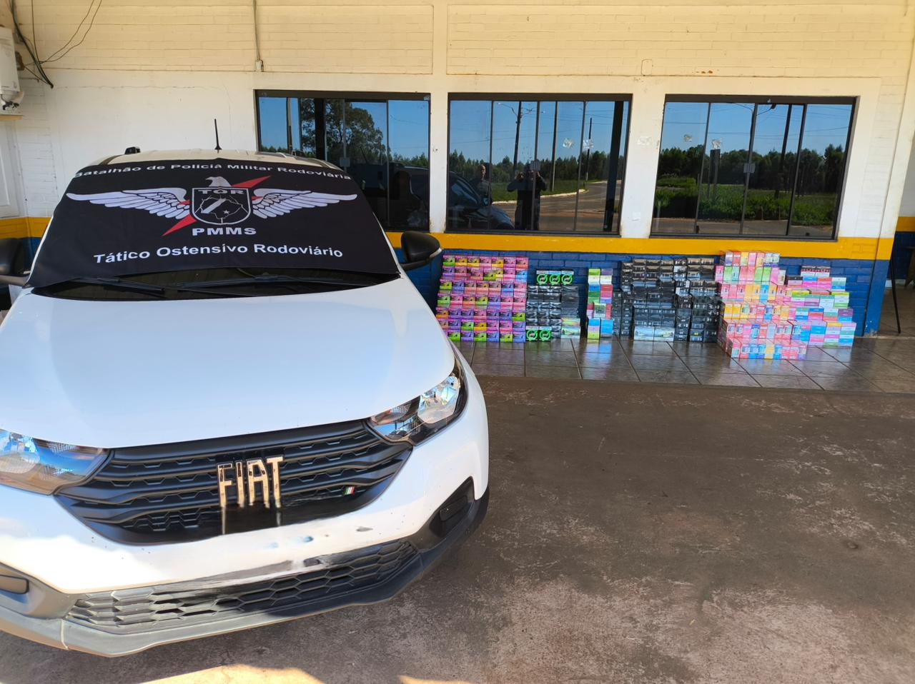 O condutor foi preso em flagrante e encaminhado à delegacia competente para as providências cabíveis. O veículo e os produtos apreendidos também foram apresentados à autoridade policial.