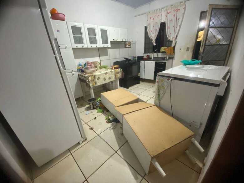 De acordo com a Polícia Militar, a equipe foi acionada por volta das 20h03 para atender uma ocorrência de violência doméstica. No local, a vítima relatou que o filho chegou em casa bastante alterado e iniciou uma discussão. Durante o desentendimento, o homem passou a quebrar diversos objetos dentro da residência, derrubando armários da cozinha e espalhando alimentos já preparados pelas paredes e pelo chão.
