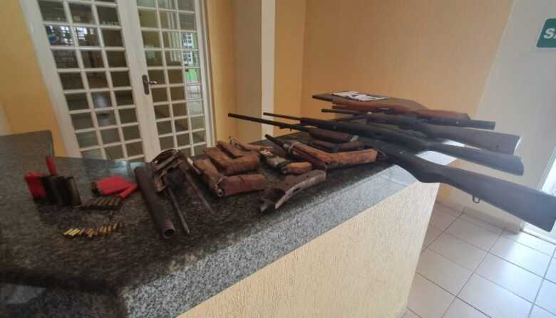 A equipe policial recebeu uma denúncia de que um idoso de 77 anos estaria ameaçando moradores da região. Quando os militares chegaram ao local, encontraram várias armas e munições.