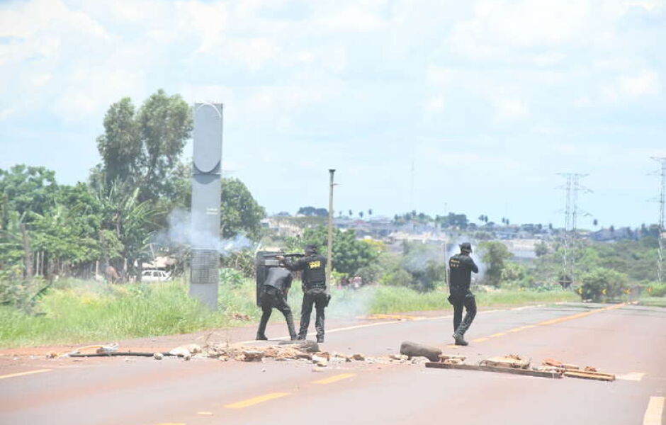 Os agentes fizeram uso de bombas de efeito moral e de munições não letais, disparadas pela polícia na tentativa de conter os ânimos dos envolvidos. Alguns indígenas atearam fogo na área de pastagem bloquearam a Perimetral Norte com pedaços de galhos e entulhos.