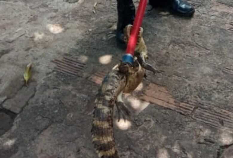Uma mulher de 51 anos, residente à rua General Câmara, no Centro de Miranda, acionou à Polícia Militar Ambiental na tarde desta segunda-feira (16), para informar que um jacaré estava embaixo de uns materiais de construção no quintal da casa.