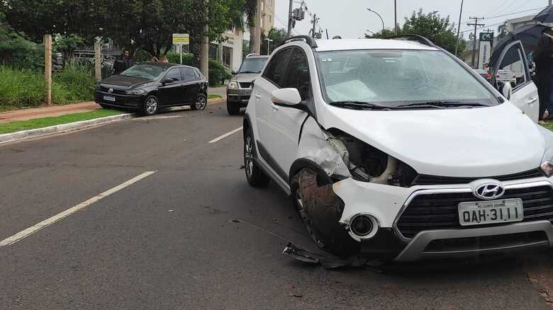 Um acidente envolvendo três veículos terminou com um carro, modelo HB20, tombado em meio a Avenida Ricardo Brandão na tarde desta sexta-feira (8), em Campo Grande.