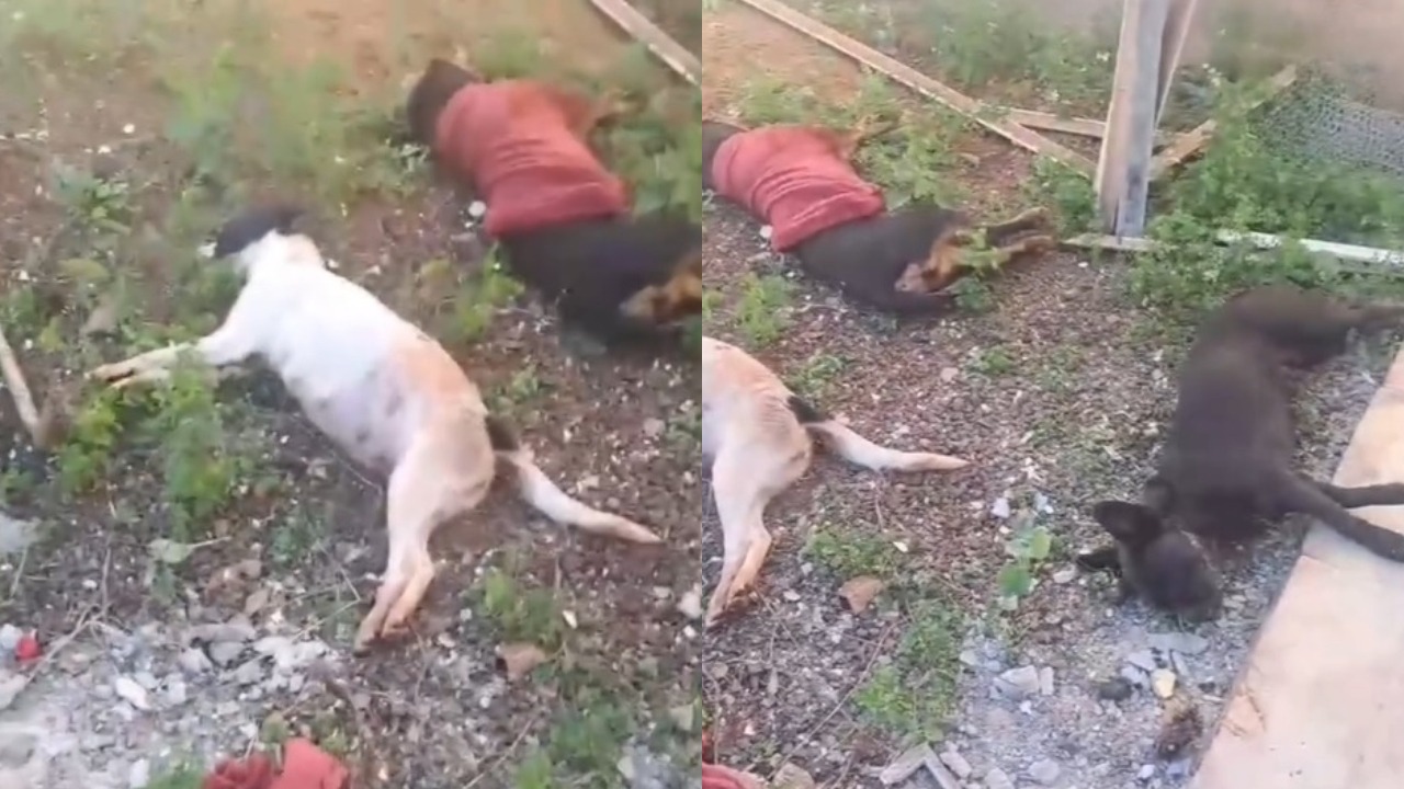 Conforme as informações policiais, a dona dos animais relatou que desconhecidos arremessaram veneno por cima do muro de sua residência. Ao acordar na manhã de hoje, encontrou os três sem vida, entre eles está uma cadela, que estava amamentando uma ninhada.