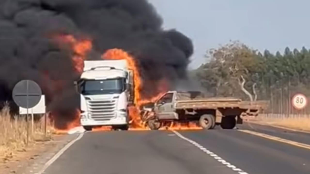Um caminhão tanque pegou fogo após uma colisão ocorrida na MS-377, no município de Inocência, durante a manhã desta sexta-feira (22). O outro veículo envolvido, uma caminhonete, também foi tomada pelas chamas.
