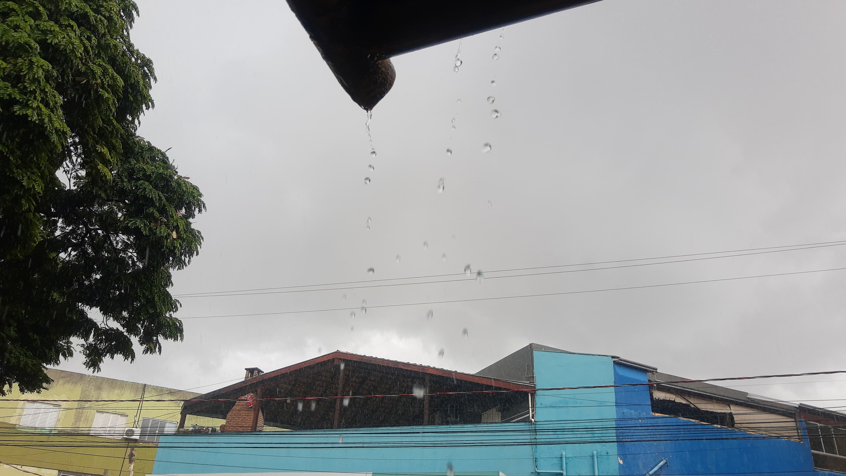 Um leitor, que preferiu não se identificar, contou que estava indo trabalhar quando foi ‘pego de surpresa’ pela chuva, ficando preso no ponto de ônibus para não se molhar.