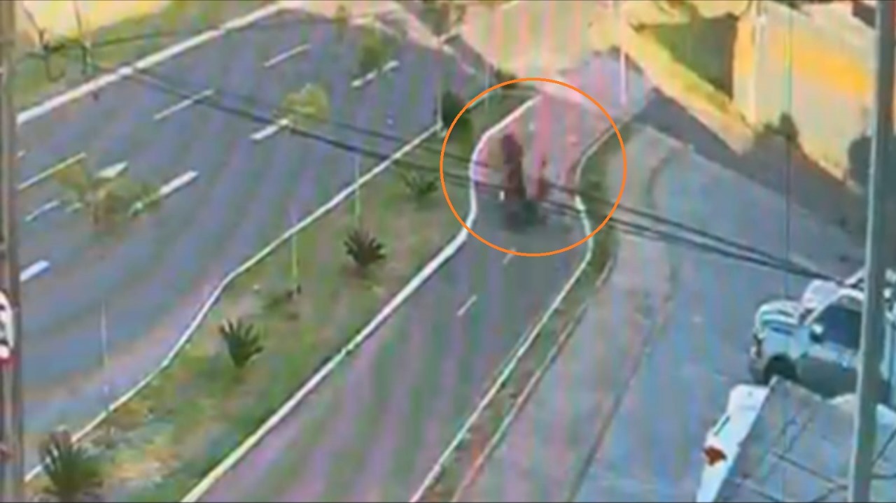 Sem perceber, o idoso atravessa a faixa da ciclovia e acaba sendo atingido pela motocicleta. Por conta do impacto, o homem ficou gravemente ferido, sofrendo um TCE (Traumatismo Crânio Encefálico) grave.