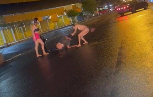 Um homem, que não teve o nome divulgado, apanhou de duas travestis no meio da rua durante a noite de segunda-feira (30), na região de fronteira entre Ponta Porã e Pedro Juan Caballero. As imagens ganharam as redes sociais durante a tarde de ontem.