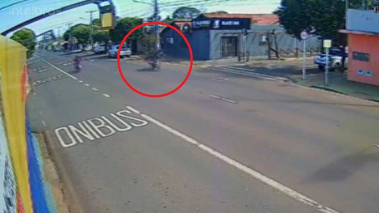 Uma câmera de segurança pegou o momento em que Manoel Messias Filho, de 74 anos, é atropelado por uma moto no cruzamento das ruas Brilhante com Jamil Nachif, na Vila Bandeirante, em Campo Grande, durante a tarde de terça-feira (1°).