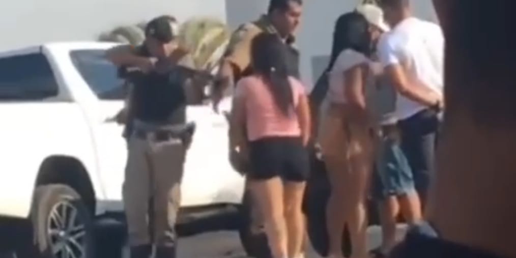 As imagens mostram o momento em que quatro pessoas são abordadas por militares, dois homens e duas mulheres. Uma delas fica indignada e, no meio da tensão, acerta uma bofetada no rosto de um dos policiais e o pior quase acontece.