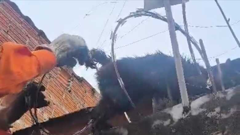 Com forme as informações divulgadas pelo 3° Grupamento dos bombeiros, as equipes foram acionadas por uma moradora, que detalhou na ligação que o animal estava tentando atravessar de uma casa para outra, quando acabou enroscando nas lâminas.