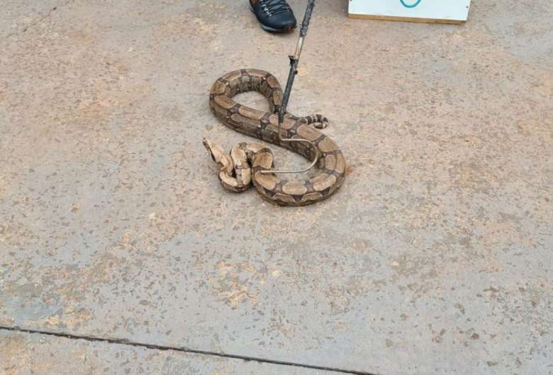 Quando os policiais chegaram ao local, a jiboia de aproximadamente dois metros estava embaixo de um armário do escritório da casa e foi capturada com uso de gancho especial. Ela foi colocada em uma caixa de contenção e encaminhada ao Centro de Reabilitação de Animais Silvestres (CRAS).