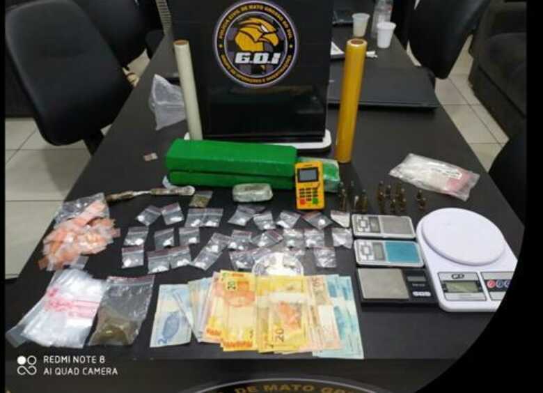 Durante buscas na residência, os investigadores encontraram a esposa e na casa, dentro de uma mala, mais entorpecente, 56 porções de cocaína, embalada, prontas para venda, alem de 4 balanças.
