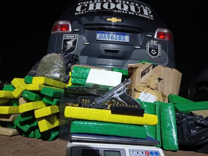 O jovem identificado como Matheus de 25 anos foi flagrado com mais de 150kg de entorpecentes em casa, além de arma e munições na residência da rua Cocal, no bairro Guanandi II.