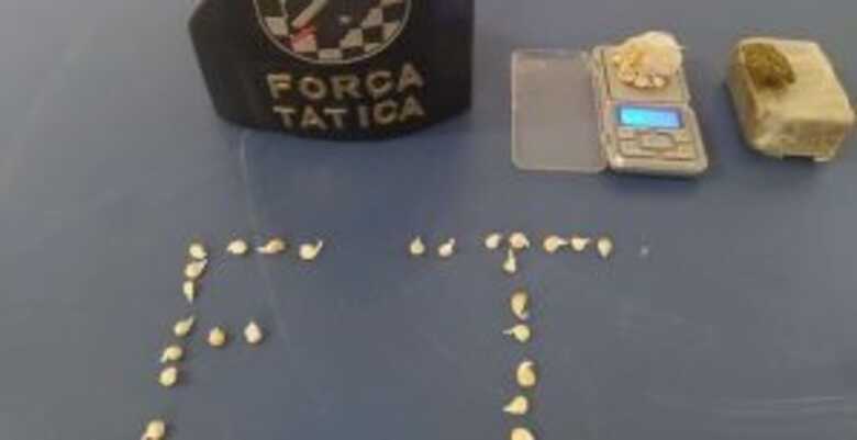 O homem tentou fugir, mas acabou sendo abordado pelos policiais. Durante revista, foram encontrados porções de maconha e uma quantia em dinheiro. Neste momento os policiais decidiram entrar na casa e encontraram 34 trouxinhas de crack (16,3g), que estavam escondidas dentro de portas da casa. Foi localizada também uma balança de precisão, um tablete de maconha (147g) e mais uma porção de crack no telhado da casa.