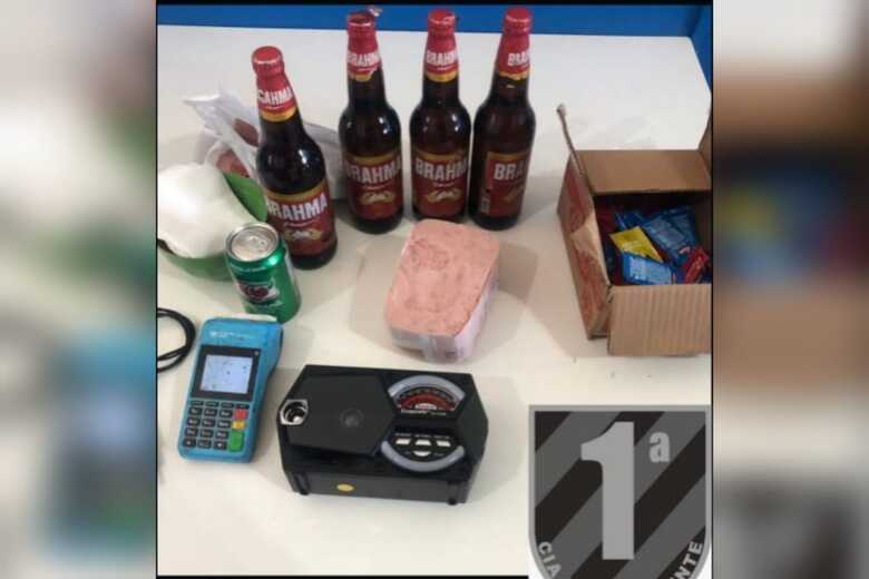 A vítima relatou que o crime havia ocorrido dentro de seu estabelecimento comercial e solicitou a presença policial em sua residência. Após entrevistas, os policiais localizaram o suposto autor do delito, assim como, o local onde estava morando onde ele foi flagrado com os objetos furtados do comércio, sendo garrafas de cerveja, um aparelho de rádio, uma máquina de cartão e produtos alimentícios identificados pela vítima.