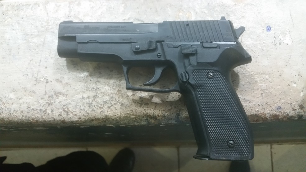 O policial sacou a arma dele e mandou o ladrão jogar a dele no chão. O suspeito obedeceu e foi preso em flagrante por roubo. A arma que o bandido utilizava era uma pistola de brinquedo.