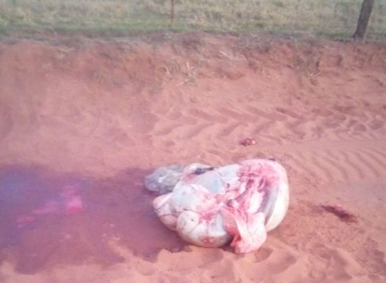 Eles levaram o gado para a estrada, mas deixaram vísceras e carcaça na fazenda (Reprodução/Internet)Bandidos, não identificados, invadiram a Fazenda São Simão de propriedade de Ademar Capuci e abateram uma novilha durante a madrugada desta quinta-feira (8) que seria de doação do Hospital do Amor.