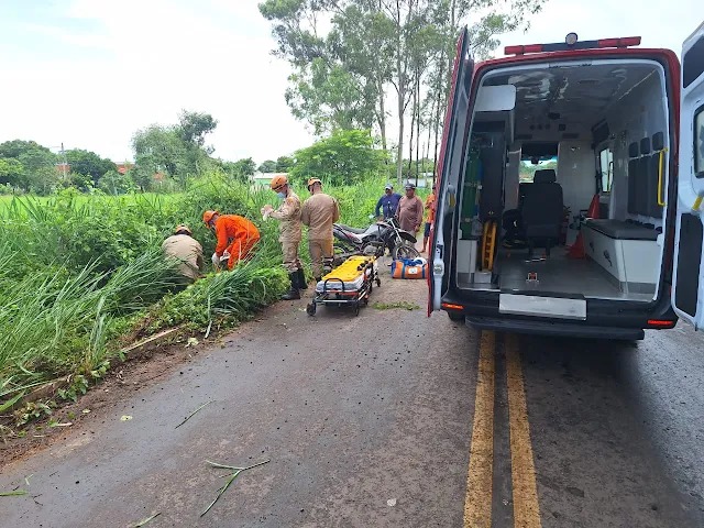 Um acidente de trânsito mobilizou o Corpo de Bombeiros na tarde de ontem (22), após a saída de pista de uma motocicleta na Rua Tiradentes, no bairro Nova Miranda, em Miranda, nas proximidades do ferro-velho do Chula.