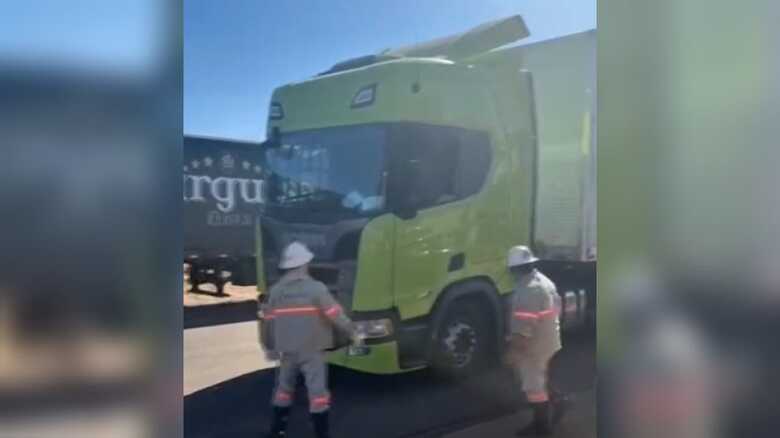 Foi necessário cortar o fornecimento de energia, seguindo corretamente o procedimento de segurança, sem necessidade de remoção forçada do motorista. O caminhão transportava carga de produtos químicos, o que levou à adoção de protocolos específicos de segurança no local.