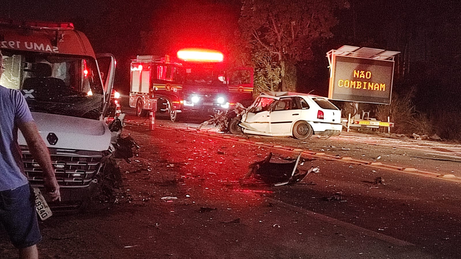 O motorista Edson Dos Santos de Almeida, de 24 anos, morreu após colidir o Volkswagen Gol que estava contra uma viatura do SAMU (Serviço de Atendimento Móvel de Urgência) durante a noite de sexta-feira (5), na BR-262, na saída para Cuiabá, em Campo Grande.