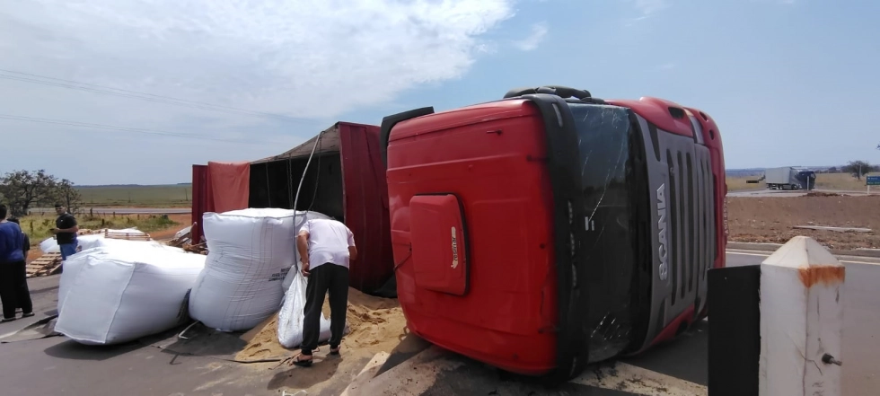 Uma carreta bitrem tombou durante a tarde deste sábado (6), na rodovia MS-134, trecho que liga Nova Andradina ao distrito de Nova Casa Verde. Por sorte, ninguém ficou ferido.