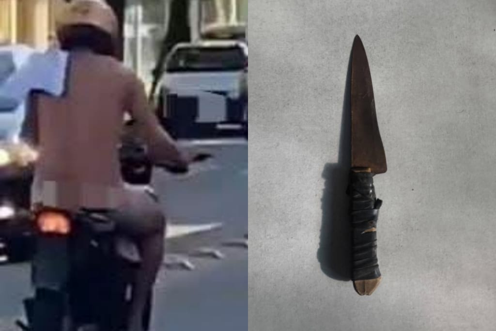 Novas informações apontaram que o mesmo indivíduo havia roubado uma motocicleta mediante grave ameaça. Ele estava em total descontrole, nu, armado com uma faca e representava risco à vida de moradores.