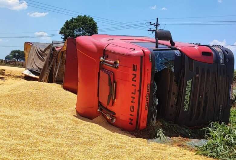 Uma carreta que transportava milho tombou na manhã deste sábado (11), na rodovia MS-480, região do limite dos municípios de Batayporã e Anaurilândia e próxima à divisa dos estados de Mato Grosso do Sul com o estado de São Paulo, via usina hidrelétrica Sérgio Motta (Rio Paraná).