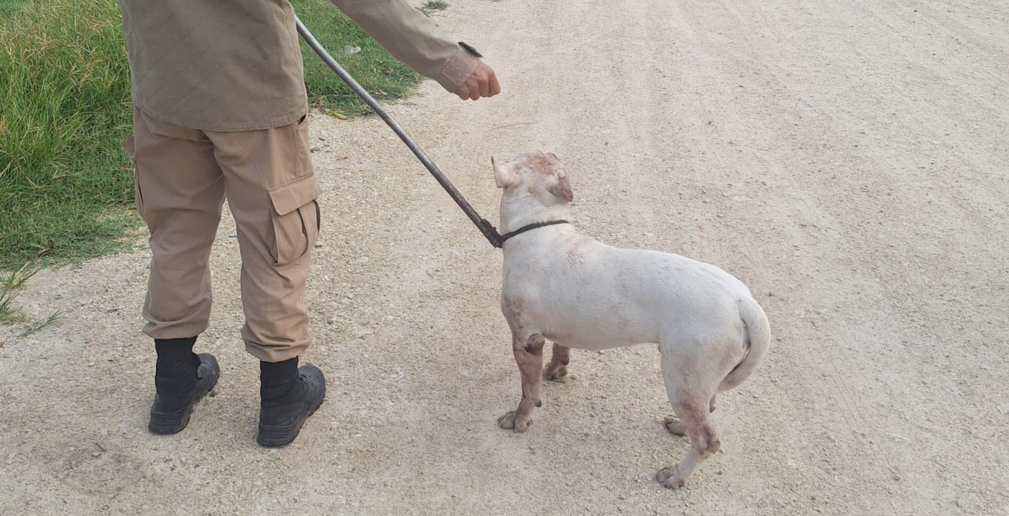 Um cão da raça pitbull foi capturado após ser encontrado solto na Rua Nossa Senhora dos Navegantes, no bairro Santo Antônio, durante a manhã deste sábado (21), em Ladário.
