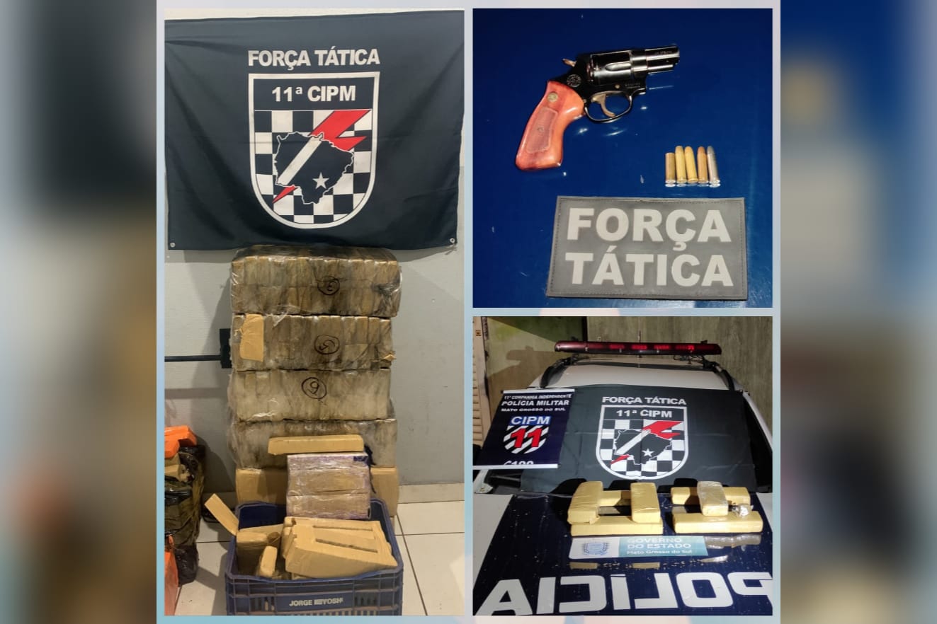 Na casa onde aconteceu o confronto, os militares encontraram grande quantidade de maconha, cerca de 182 quilos, além de materiais para embalagem, caixas, papel pardo, plástico bolha e balança de precisão.