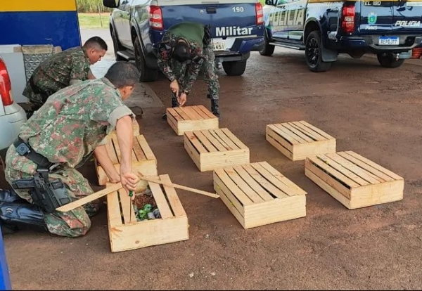 Aves estavam em carro que seguia pela MS-141 (Foto: PMR/Divulgação)