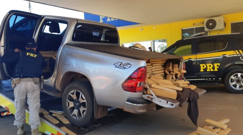 Na caminhonete, os policiais encontraram diversos tabletes de maconha, que totalizaram 857 Kg a droga. Também foi descoberto que o veículo estava com placas falsas e registro de roubo em dezembro de 2019.