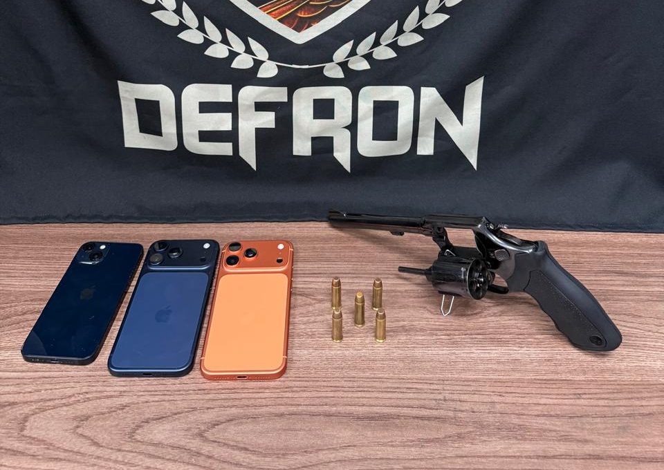Na ação, os policiais encontraram dois celulares escondidos debaixo de um guarda-roupa, além de um revólver calibre .38 municiado, localizado em uma segunda residência vinculada ao suspeito. A arma possivelmente teria sido utilizada na tentativa de homicídio investigada.
