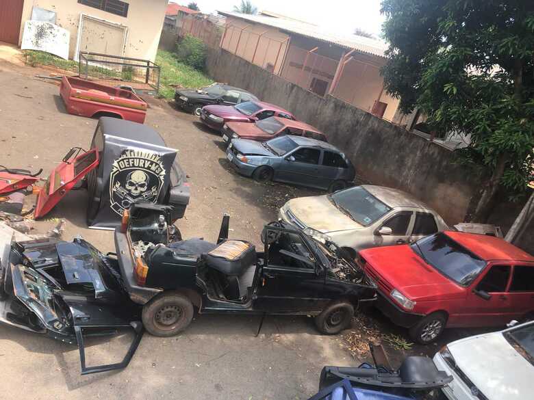 Foram realizadas novas diligências e localizadas duas oficinas de revenda de peças, sendo uma no Bairro Caiobá e outra no Bairro Nha Nha, com veículos furtados e parcialmente desmontados com peças separadas para revenda.