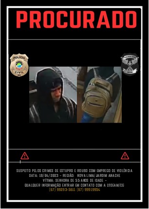 As equipes da Polícia Civil, por intermédio da DEAM (Delegacia Especializada de Atendimento à Mulher) está procurando um rapaz após ele ter estuprado uma comerciante de 55 anos, no bairro Nova Lima. O crime teria acontecido no dia 18 de abril, durante uma forte chuva que acontecia na Capital.