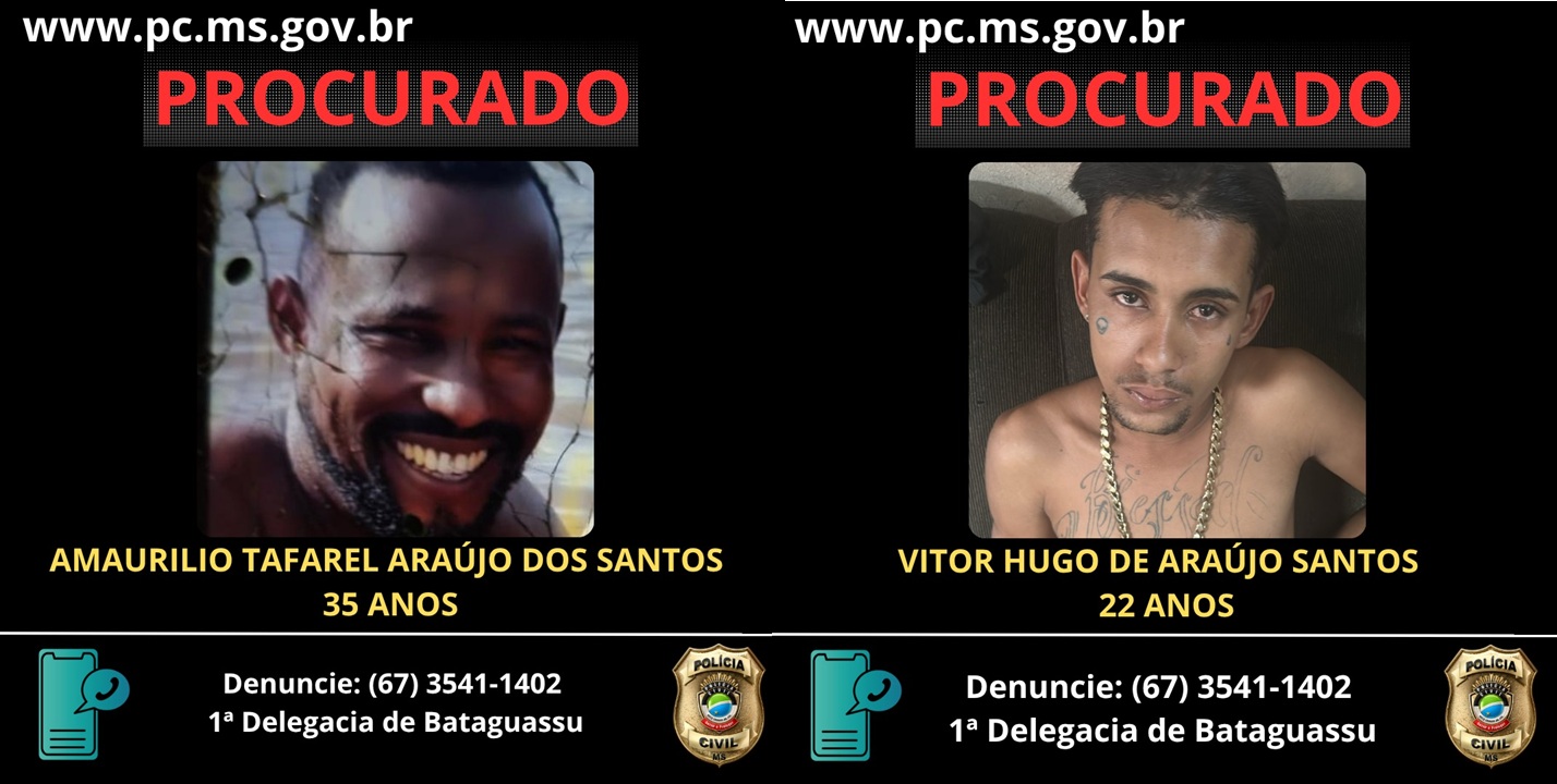 A Polícia Civil de Mato Grosso do Sul, por intermédio da 1ª Delegacia de Polícia Civil de Bataguassu, divulgou a identificação de dois homens procurados pela Justiça pela prática de homicídio qualificado ocorrido no dia 3 de abril de 2026, em Bataguassu, cidade 310 quilômetros distante da Capital.