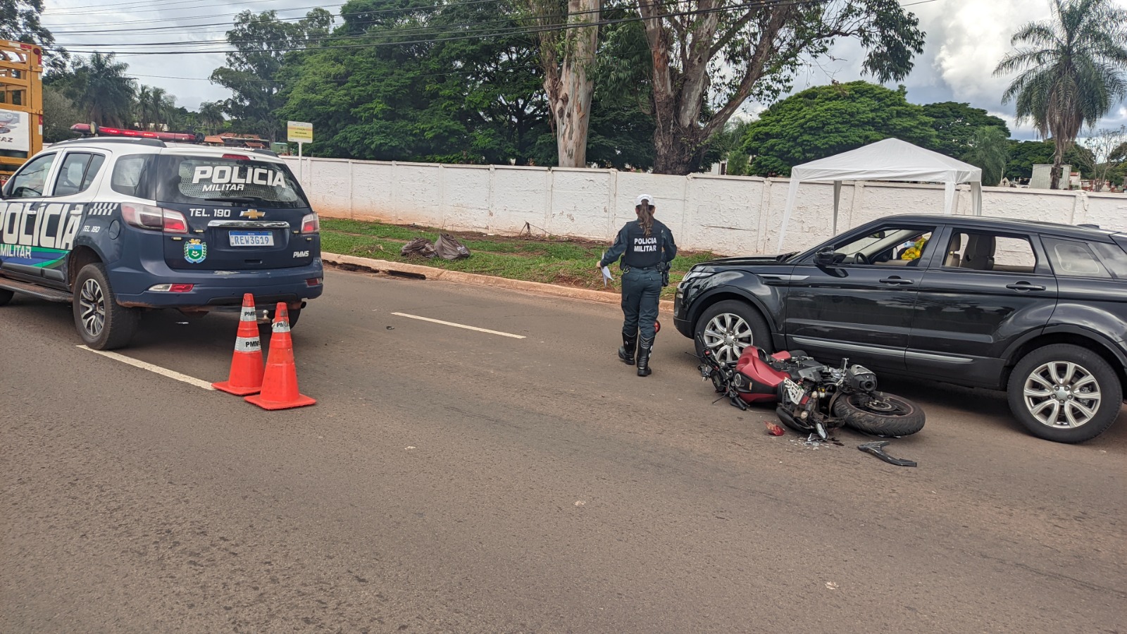 Um policial militar, que não teve a identificação divulgada, precisou ser socorrido após se envolver em um acidente na Avenida Cônsul Assaf Trad, em Campo Grande, durante a tarde desta quarta-feira (10).