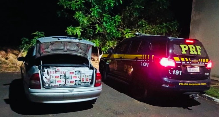A Polícia Rodoviária Federal (PRF) apreendeu, nesta sexta-feira (5), 10 mil maços de cigarros contrabandeados em Bataguassu A carga, de origem estrangeira e sem documentação fiscal, estava escondida dentro de um GM Corsa Super.