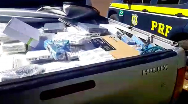 No local, o outro suspeito, também de 28 anos, confessou que transportava uma grande de mercadorias de origem estrangeira. Na carroceria da caminhonete os agentes encontraram diversos eletrônicos sendo: roteadores, modens, equipamentos para provedores de internet, HDs, entre outros. Todos sem qualquer documentação fiscal.