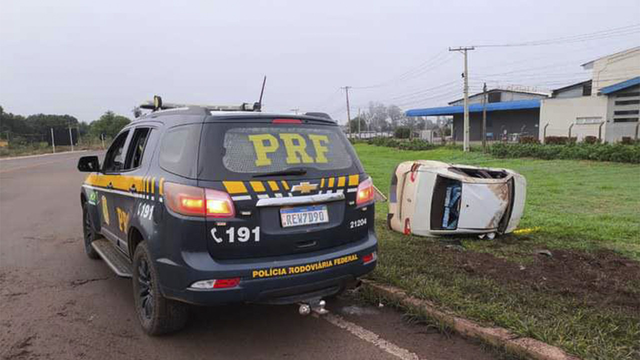 Veículo capotou em uma rotatória (Divulgação/PRF)
