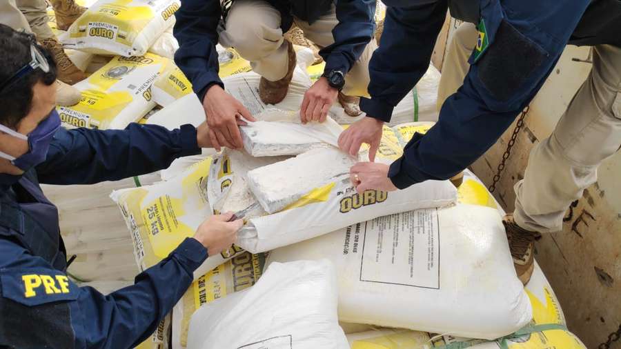 A Polícia Rodoviária Federal (PRF) encontrou 501,8 kg de cocaína em uma carga de farinha de trigo na última segunda-feira (1), às 18h. A apreensão da carga ocorreu na MS-386, região de Amambai após o veículo ser monitorado por equipes da PRF.