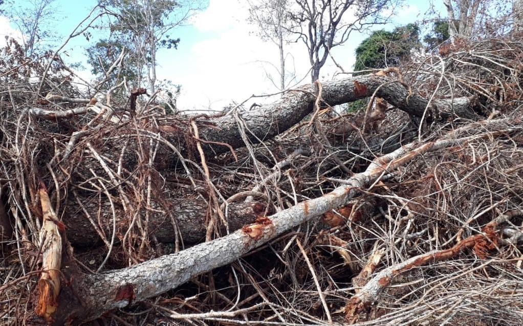 As árvores foram arrancadas. Só de aroeira, considerada uma espécie nobre, foram encontradas 160 árvores de grande porte nas leiras.