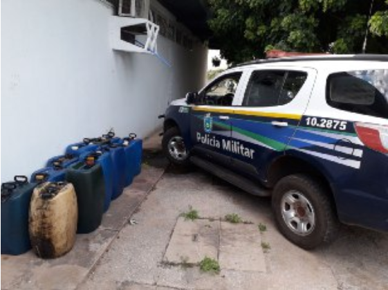 No local, foi constatado vários tambores cheios de combustíveis do tipo óleo diesel. Nas proximidades foi avistado um adolescente, o qual foi abordado, se aproximando logo em seguida seus pais procurando pelo mesmo. Sem saber o que dizer sobre o ocorrido, sua mãe informou que o menor não se encontrava em casa.