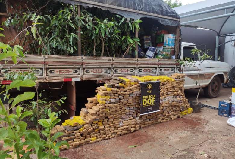 Policiais do Departamento de Operações de Fronteira (DOF) apreenderam na tarde de terça-feira (23), um caminhão Ford F-4000 carregado com 541,4 quilos de maconha que estavam escondidos em uma carga de mudas de árvores.
