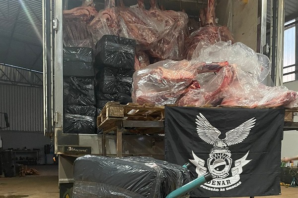 Os criminosos foram presos no momento e que carregavam 1,5 toneladas de maconha para dentro de um caminhão frigorífico, que já estava carregado com 18 toneladas de carne.