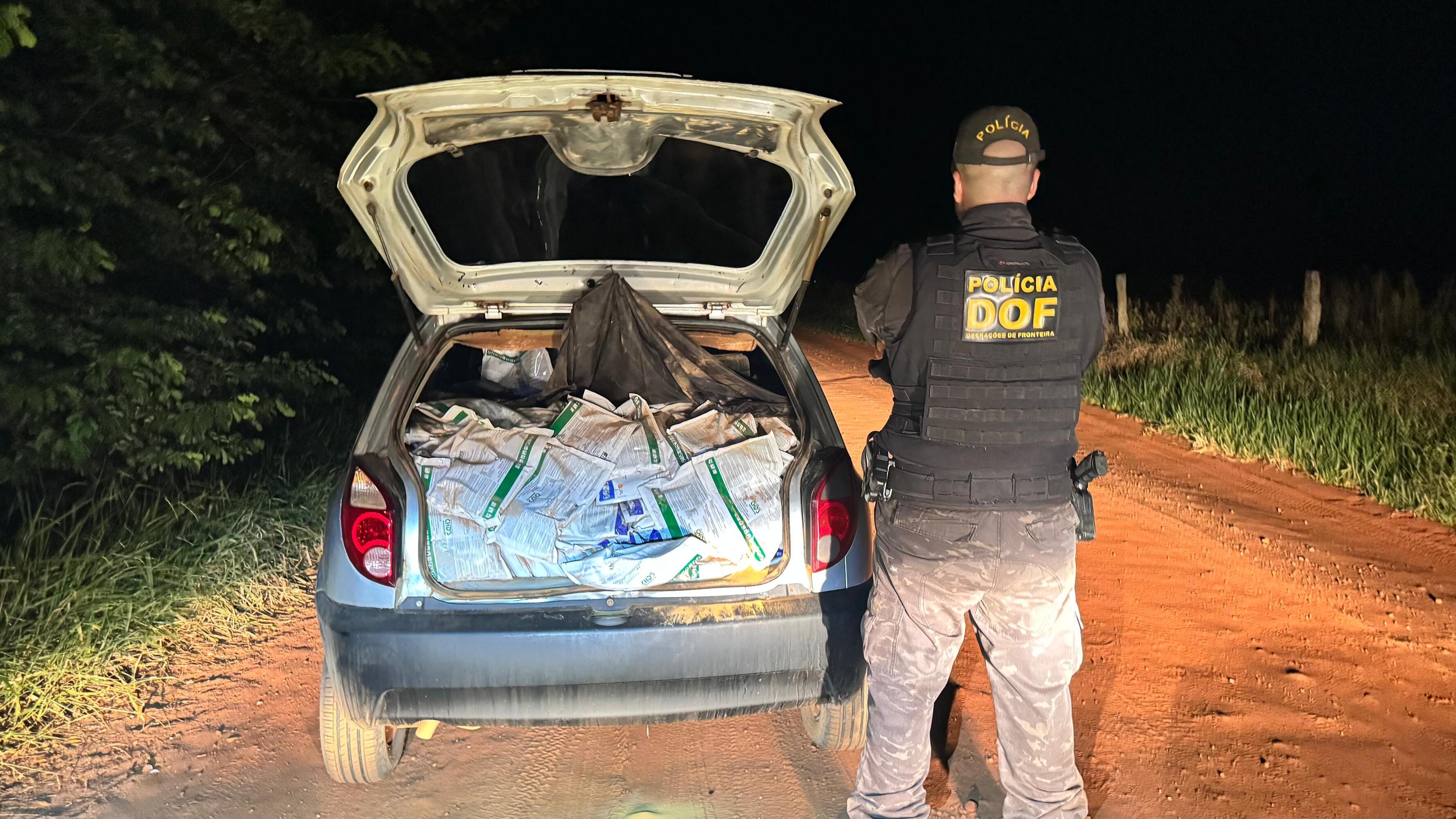 Carga de 600 quilos de defensivos agrícolas de origem estrangeira foi apreendida por policiais militares do DOF (Departamento de Operações de Fronteira) na noite de domingo (8), próximo ao trevo de Antônio João, em Ponta Porã. O material estava em um veículo GM Celta.