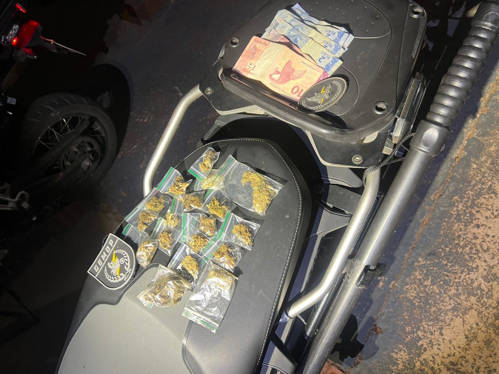 Drogas e dinheiro apreendido durante a ocorrência (Divulgação/GCM)