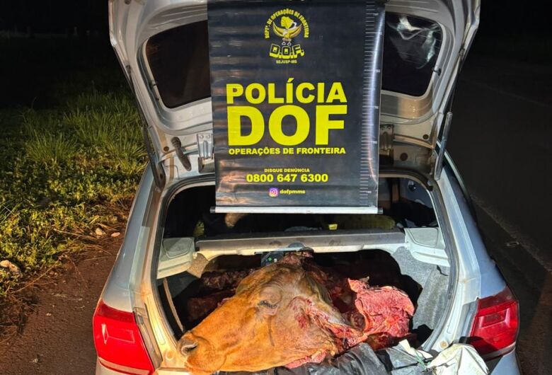 Durante a vistoria, os policiais encontraram grande quantidade de carne bovina espalhada sobre os bancos e no porta-malas do carro. Questionados, os ocupantes apresentaram versões contraditórias sobre a origem do produto e não possuíam nota fiscal nem qualquer comprovante de procedência.