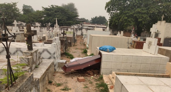O homem identificado como Roberto (37), já estava contido pela equipe da coordenadoria de fiscalização e postura municipal, quando a policia chegou. O rapaz estava completamente embriagado e possivelmente sobre efeito de entorpecentes. Ao chegarem no local, encontraram o jazigo com a gaveta violada e o caixão puxado para fora, sem tampa e com o corpo a mostra.
