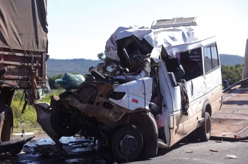 A colisão entre uma van de viagem e um caminhão na BR-020 terminou com cinco mortos e 11 feridos na região próxima à divisão entre o Distrito Federal e Formosa (GO), na manhã desta terça-feira (17). O acidente ocorreu no sentido Plano Piloto (DF). Conforme informações preliminares, a van teria atingido a traseira do caminhão, ficando com a parte frontal completamente destruída.