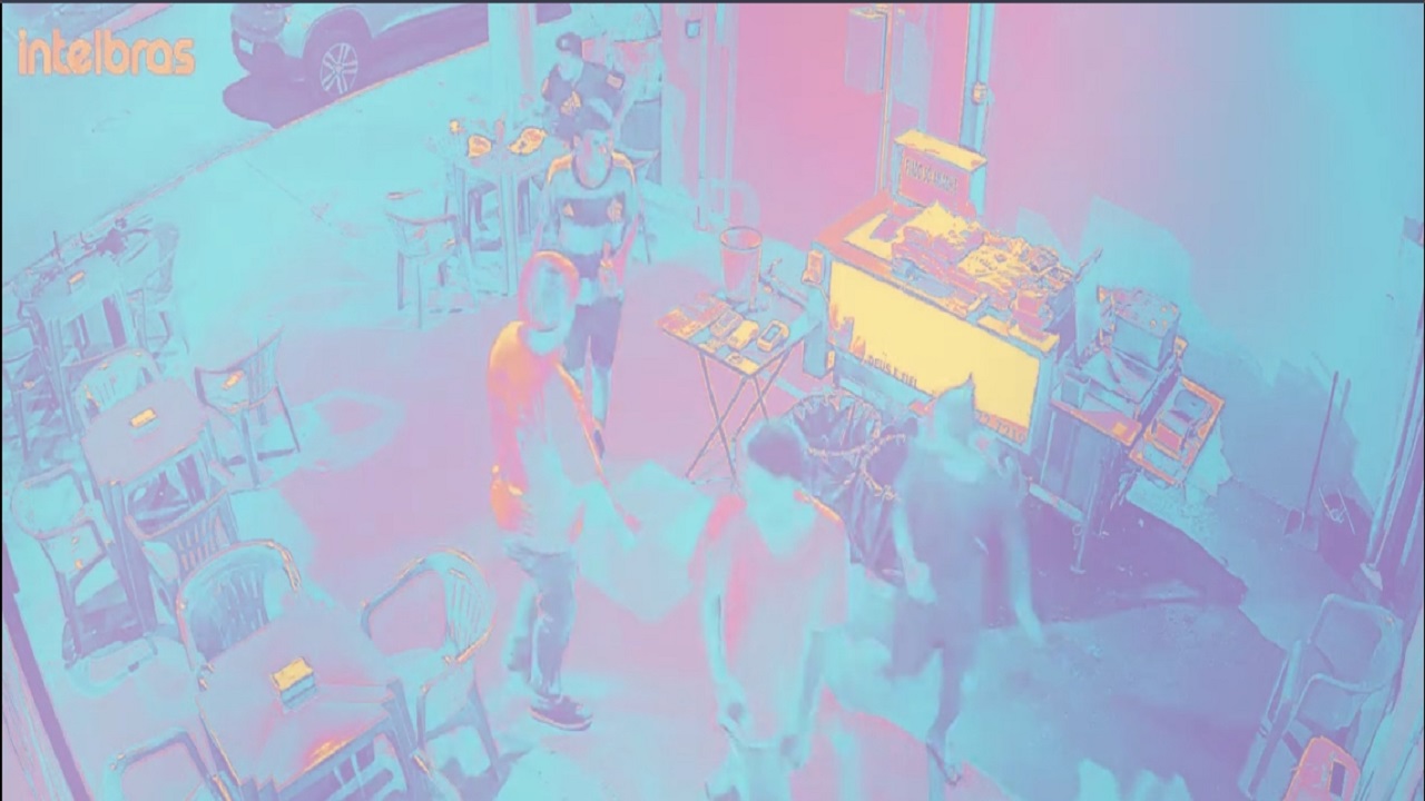 Câmera de segurança de um estabelecimento captou os cinco disparos realizados durante um atentado que aconteceu em uma praça pública em Sonora, a 361 quilômetros de Campo Grande, na noite desta sexta-feira, dia 7.